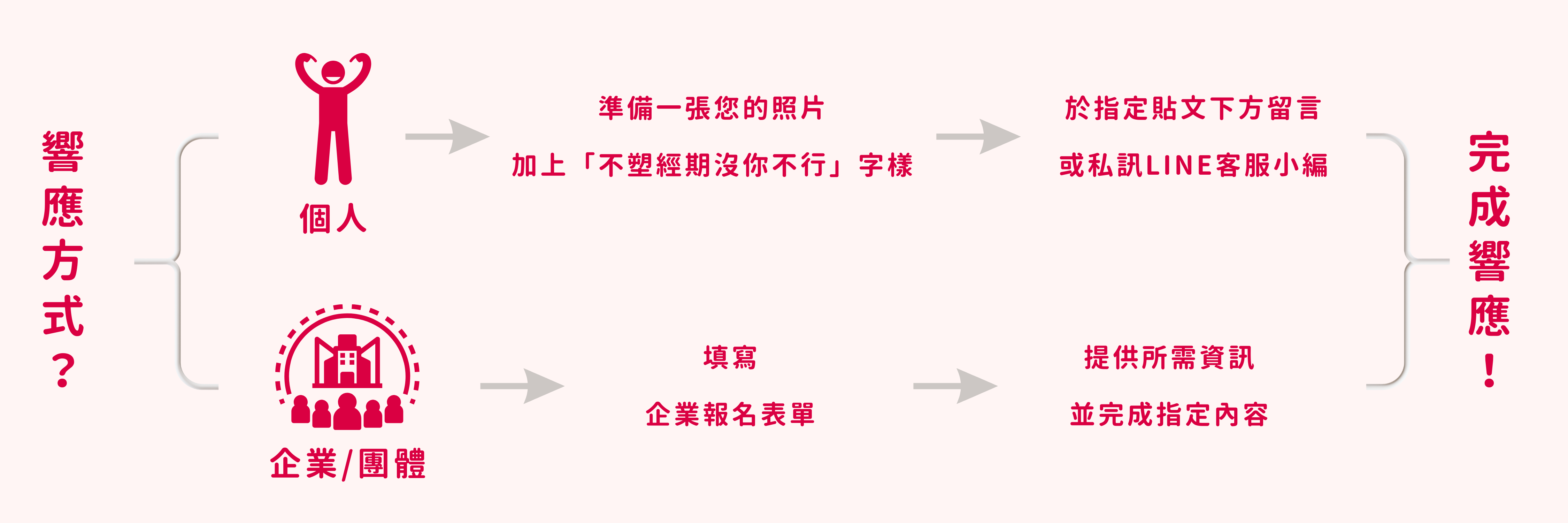 我們歡迎企業、個人、校園、團體等,都可以一起響應「不塑經期」環保行動,讓我們攜手透過小小的舉動,做出大大的改變!
