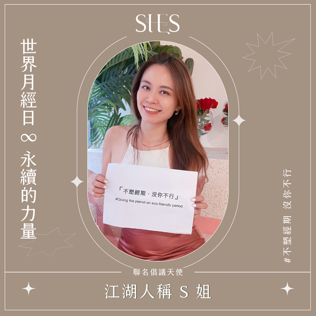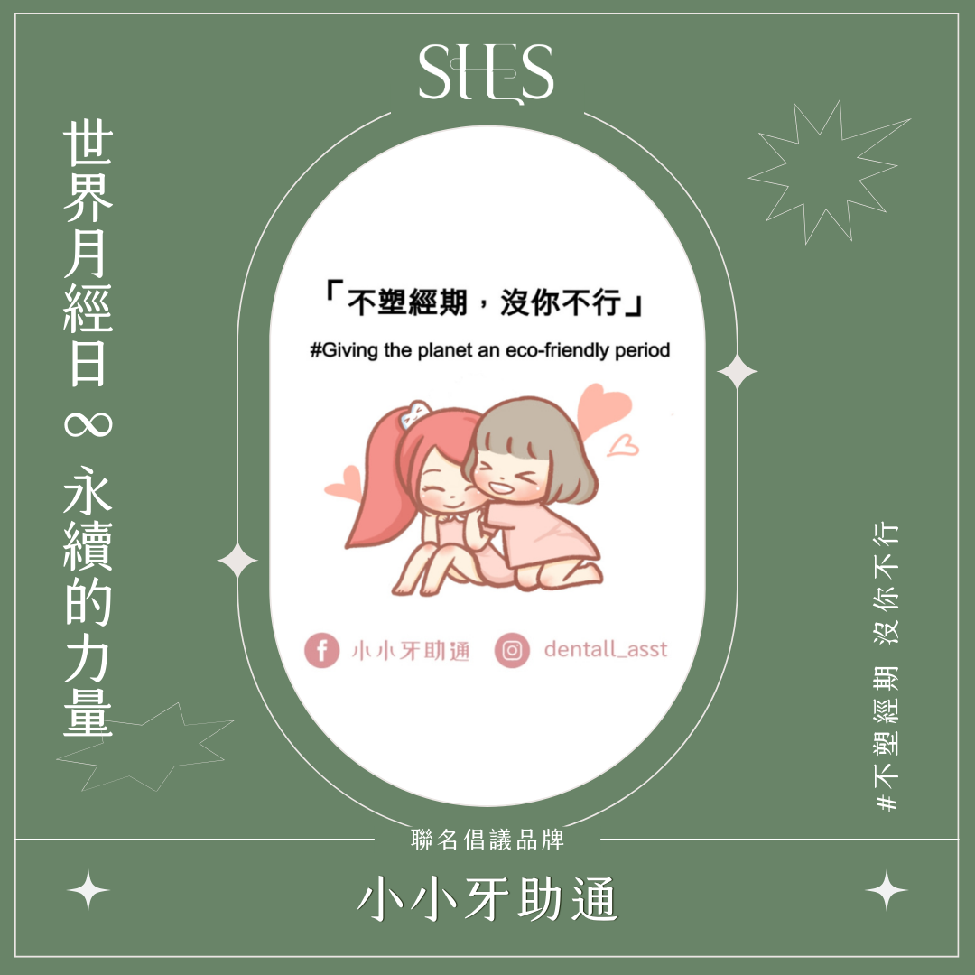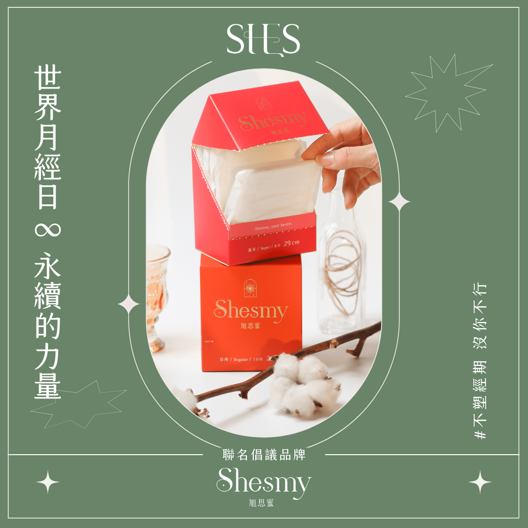 SHES 重視人道關懷、產銷責任、性別平等,有感於「不塑經期」的議題對生理者及地球有著巨大影響,卻遲遲未被討論,因此,SHES 在每年的 5/28 世界月經日舉辦「不塑經期,沒你不行」公益倡議活動,邀請企業、校園、明星、KOL、媒體 作為領頭羊,透過簡單的行動倡議這項健康環保公益議題,期盼減少地球負擔,創造人類健康、締造永續福祉。