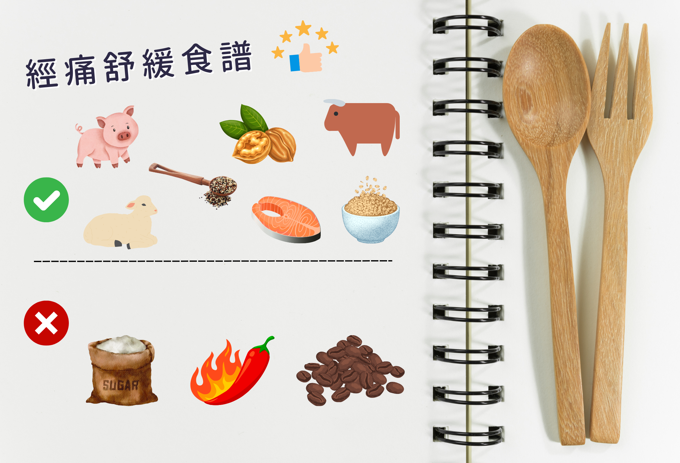 日常飲食是影響經痛程度的一個重要方面,除了喝溫熱飲品,如薑茶、紅棗茶、黑糖水,來促進血液循環;並避開高糖、咖啡因、辛辣類型的食物,避免加劇經痛之外,也可以多攝取以下食物: