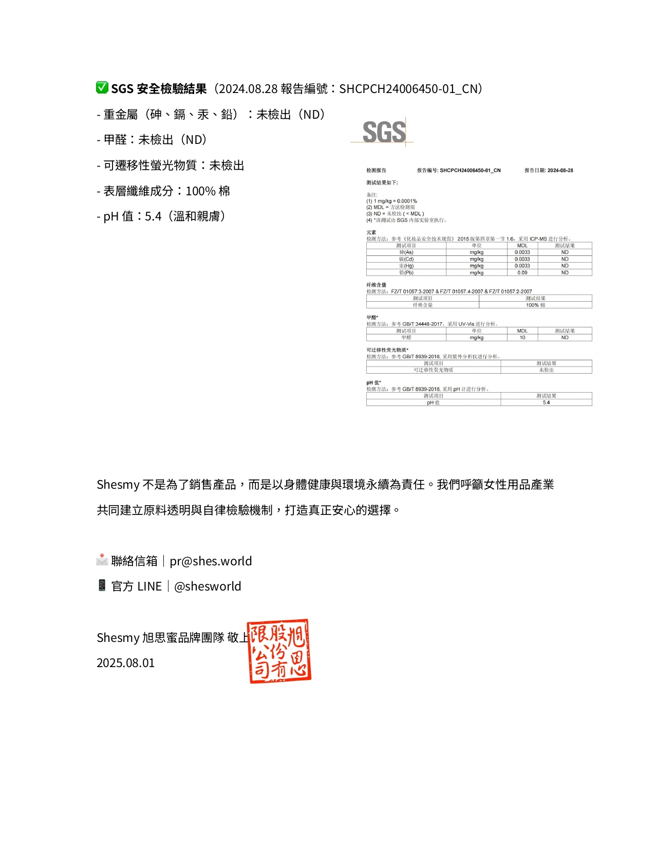 🧪 主動送驗,SGS權威檢驗數據佐證