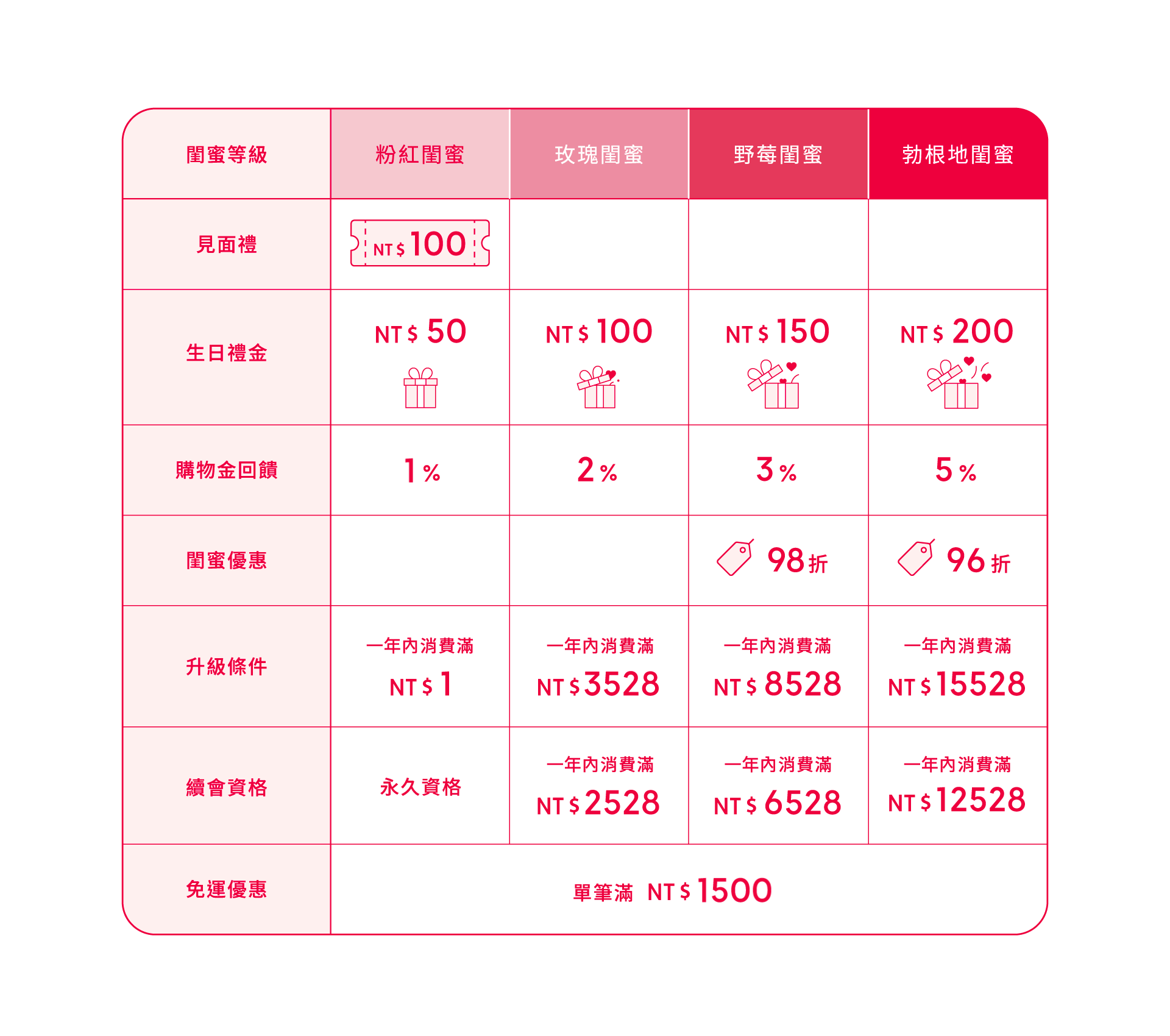 3. 加入會員並填寫『會員生日』,完成第一筆 NT$ 1 元以上訂單即可升等為粉紅閨蜜。