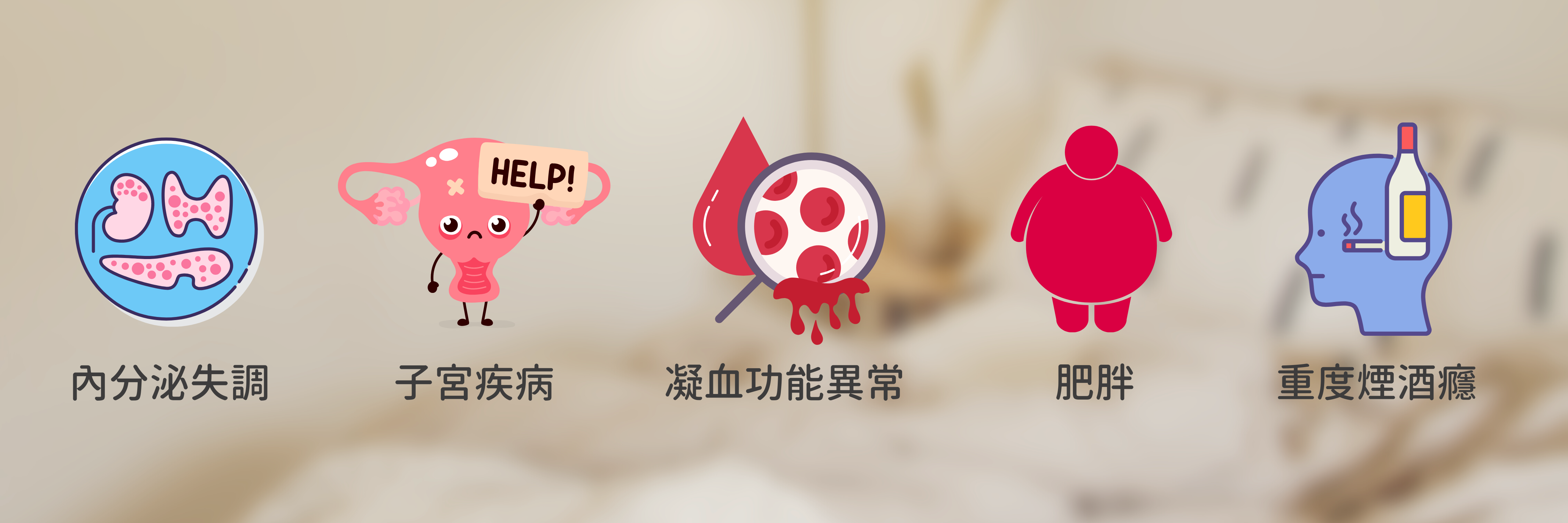 生理期經常超過1個星期(7天),或常常生理用品用不到1小時就需要更換嗎?若生理期總是超過8天以上,那就屬於月經天數較長的情況囉!會有這樣的情況可能的原因有: