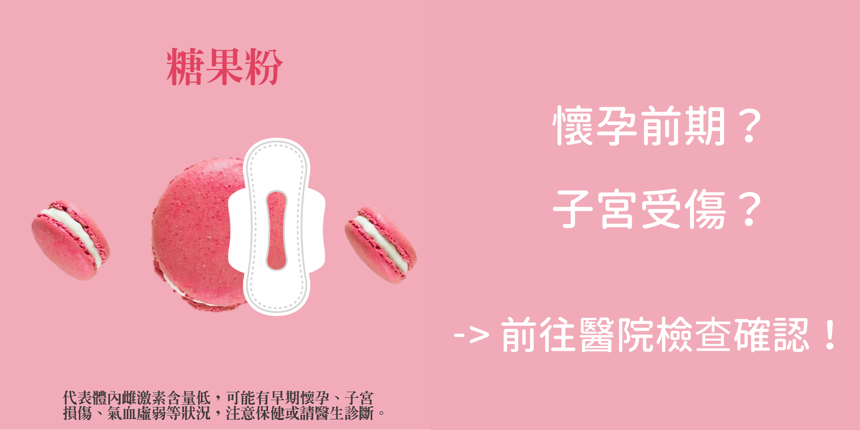 經血顏色出現淡粉色就必須特別注意,有可能是懷孕前期或是子宮受傷的現象,這兩種情況都有可能讓經血呈現粉色,應儘速前往醫院檢查,呼籲讀者們不宜自行做判斷,請交由醫生協助檢查及治療。
