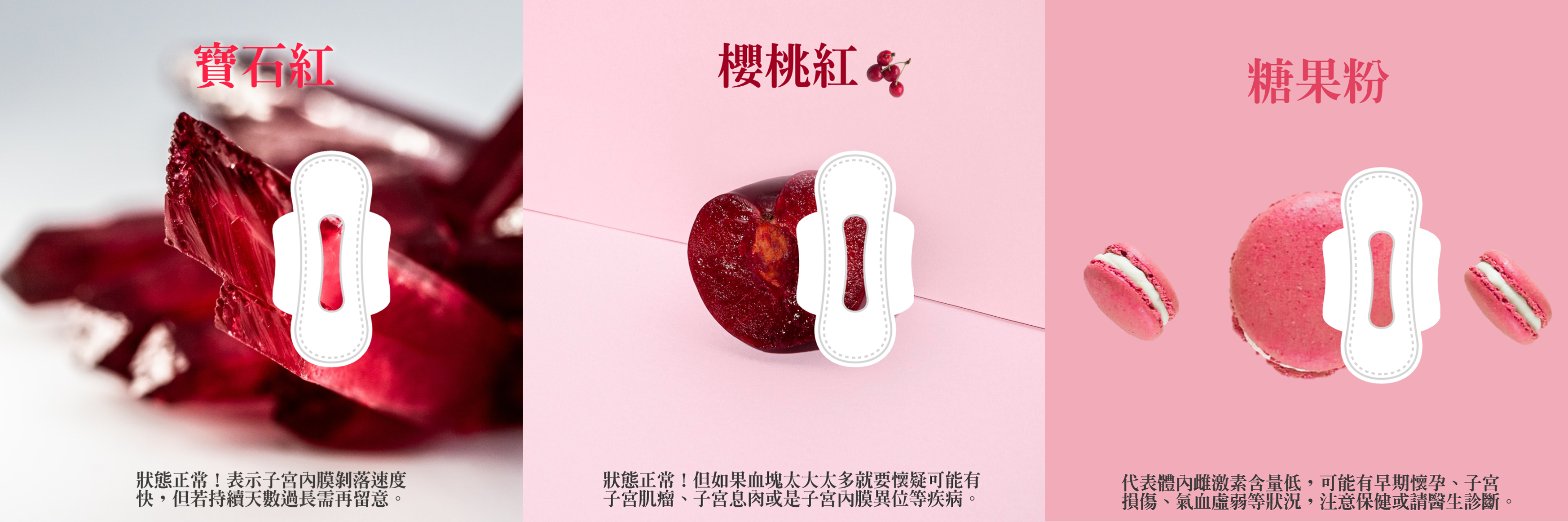 將月經顏色視為一個健康指標,透過觀察經血的顏色變動來檢測當下的身體素質,在經期間給予自己一個最舒適天然的體驗。