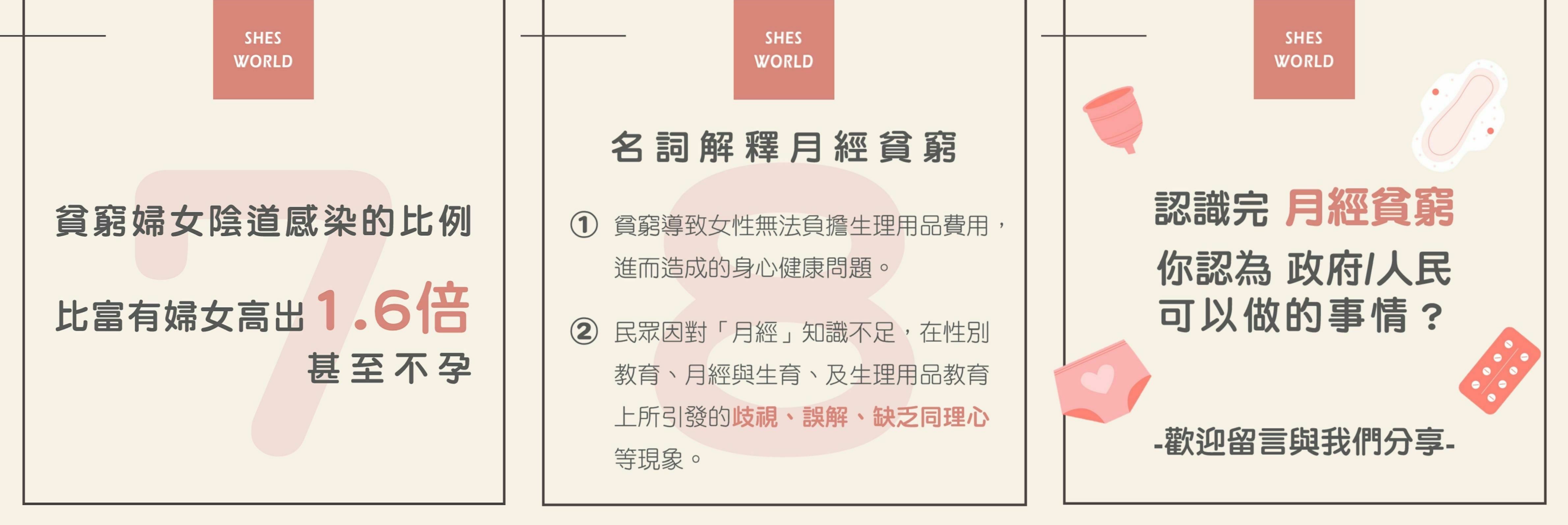 今天SHES除了用八張圖卡幫助您快速了解 #月經貧窮,也想透過這個機會與您聊聊