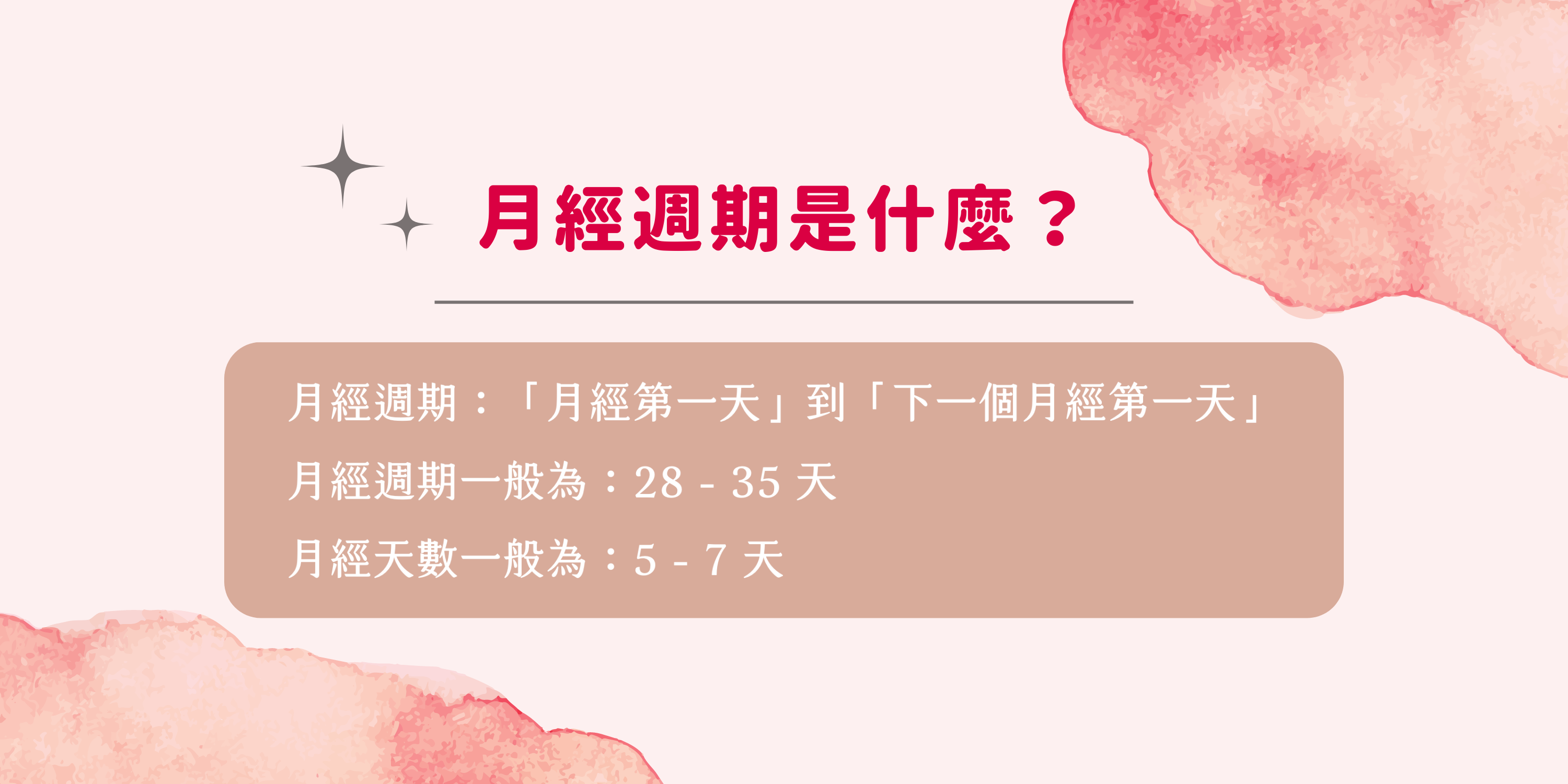 月經週期是女性子宮內膜的週期性變化,又稱為「子宮週期」,月經週期的計算是從「月經來的第一天」到「下一次月經來的第一天」之間的天數,一般人月經週期約為 28-35 天,月經天數約為 5-7 天。