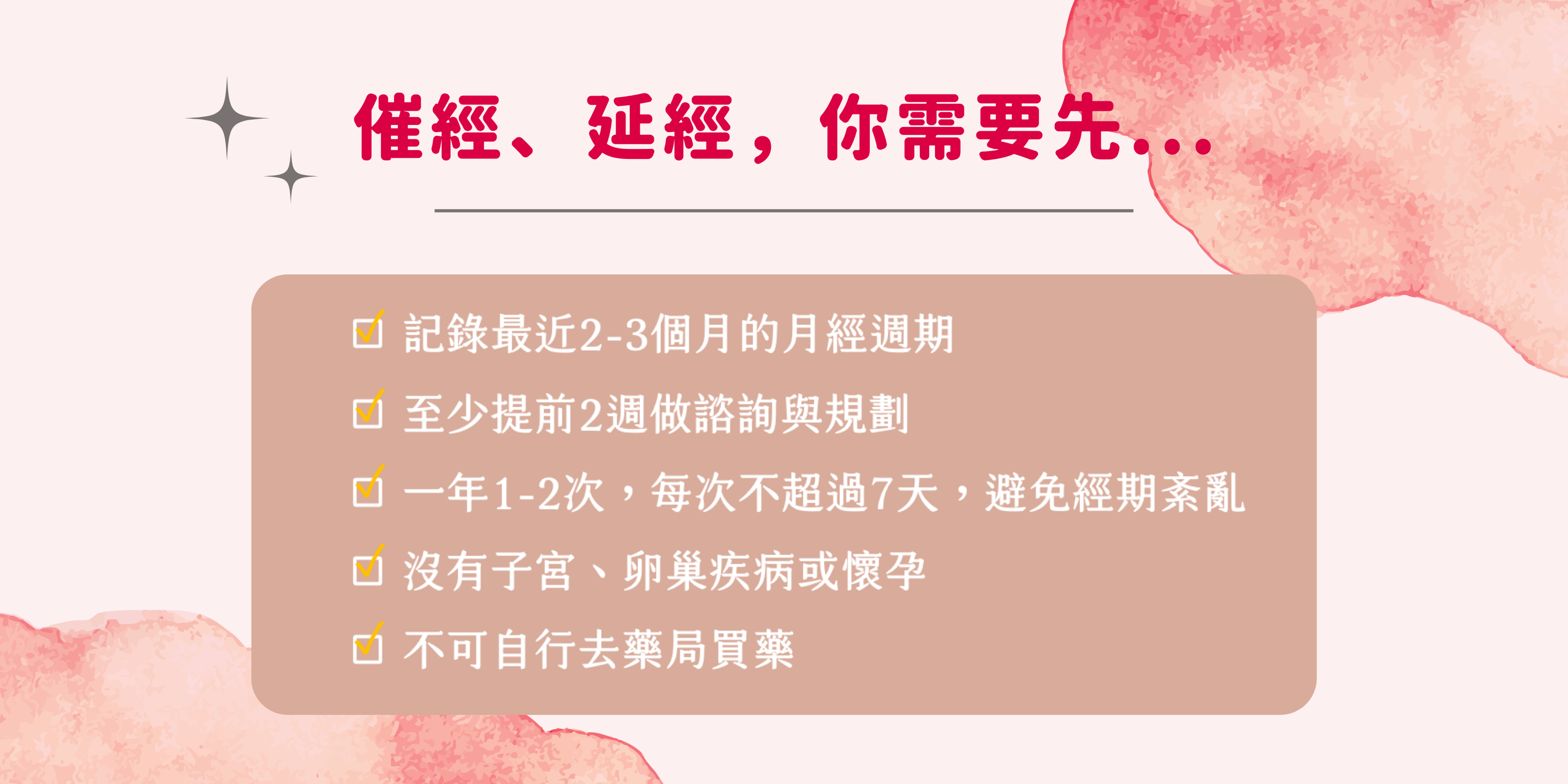 經期陪伴我們 30~40 年,一生需與它經手約 400~500 回合,難免會有些重要時刻,我們希望自己是完美狀態登場!精心打扮卻同時要分心處理經血,實在很煞風景...想要讓月經早點來(催經)、晚點來(延經),吃避孕藥就好了嗎?